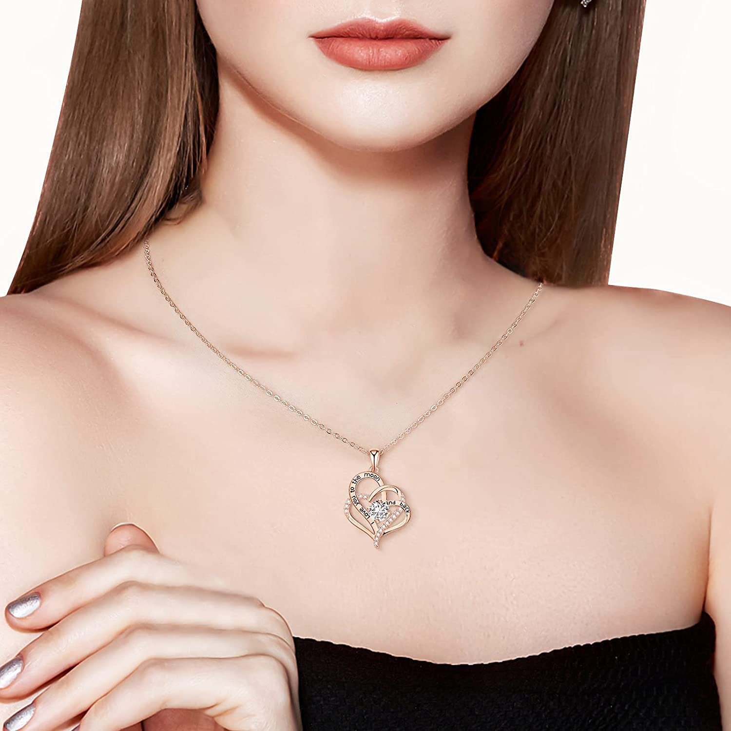 The pendant features intertwined hearts accented with shimmering cubic zirconia stones, symbolizing eternal connection, devotion, and brilliance. The centerpiece is a dazzling round stone that captures the light beautifully, making it the perfect keepsake for expressing love, gratitude, and commitment.