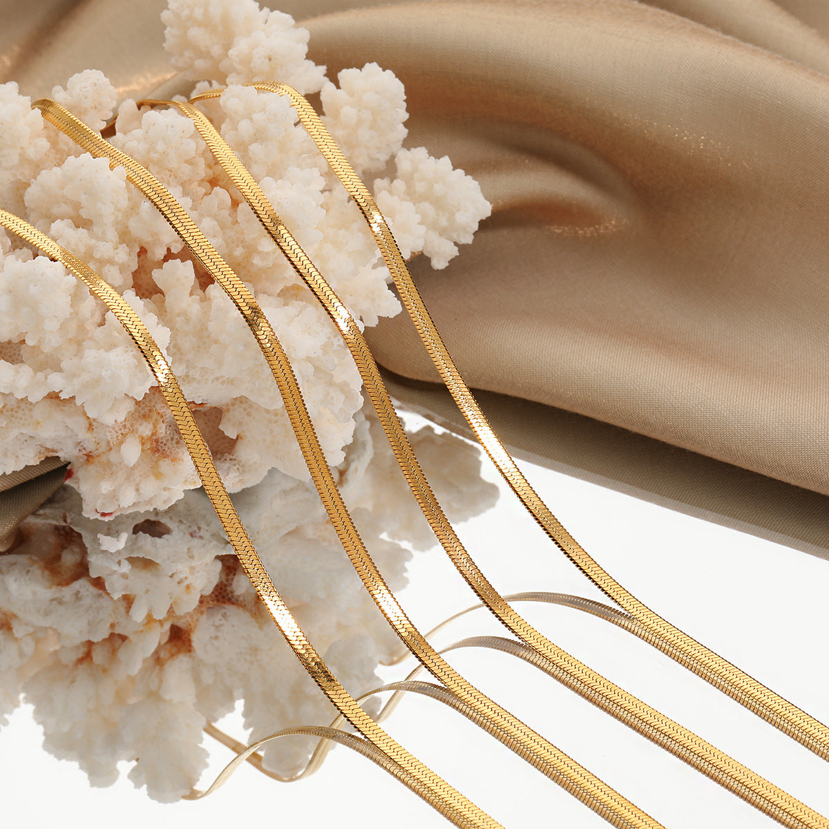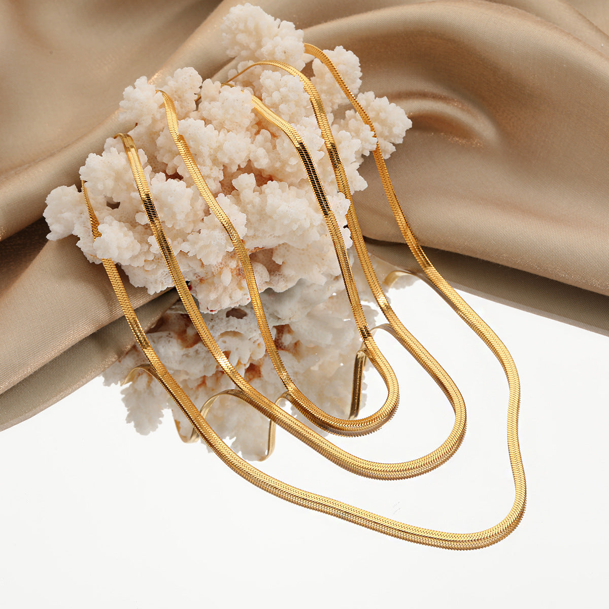 Whether worn alone for a chic, understated look or layered with other chains for a bold, trendy statement, this piece is a must-have for every jewelry lover. Its premium gold plating ensures a luxurious finish that resists fading and tarnishing, while the snake-like herringbone pattern captures and reflects light for a radiant effect.